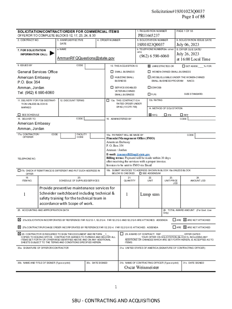 Solicitation#19J01023Q0037 Page 1 of 55 SOLICITATION/CONTRACT/ORDER FOR COMMERCIAL ITEMS1. REQUISITION NUMBER2. CONTRACT NO.3. AWARD/EFFECTIVE DATE4. ORDER Number. NAME7. FOR SOLICITATION INFORMATION