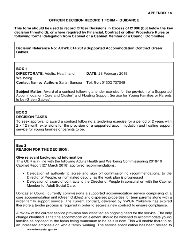 Get the free APPENDIX 1a OFFICER DECISION RECORD 1 FORM - doncaster moderngov co