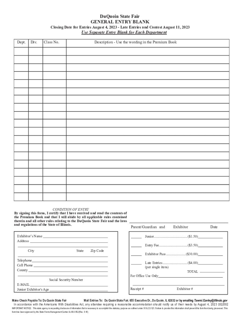 Get the free DuQuoin State Fair GENERAL ENTRY BLANK - Illinois.gov
