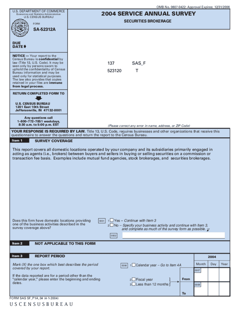 OMB No. 06070422: Approval Expires: 12/31/2006 U.S. DEPARTMENT OF COMMERCE2004 SERVICE ANNUAL SURVEYEconomics and Statistics AdministrationSECURITIES BROKERAGE OF C TM OM ARREAFORMSA52312ASBUUSCE