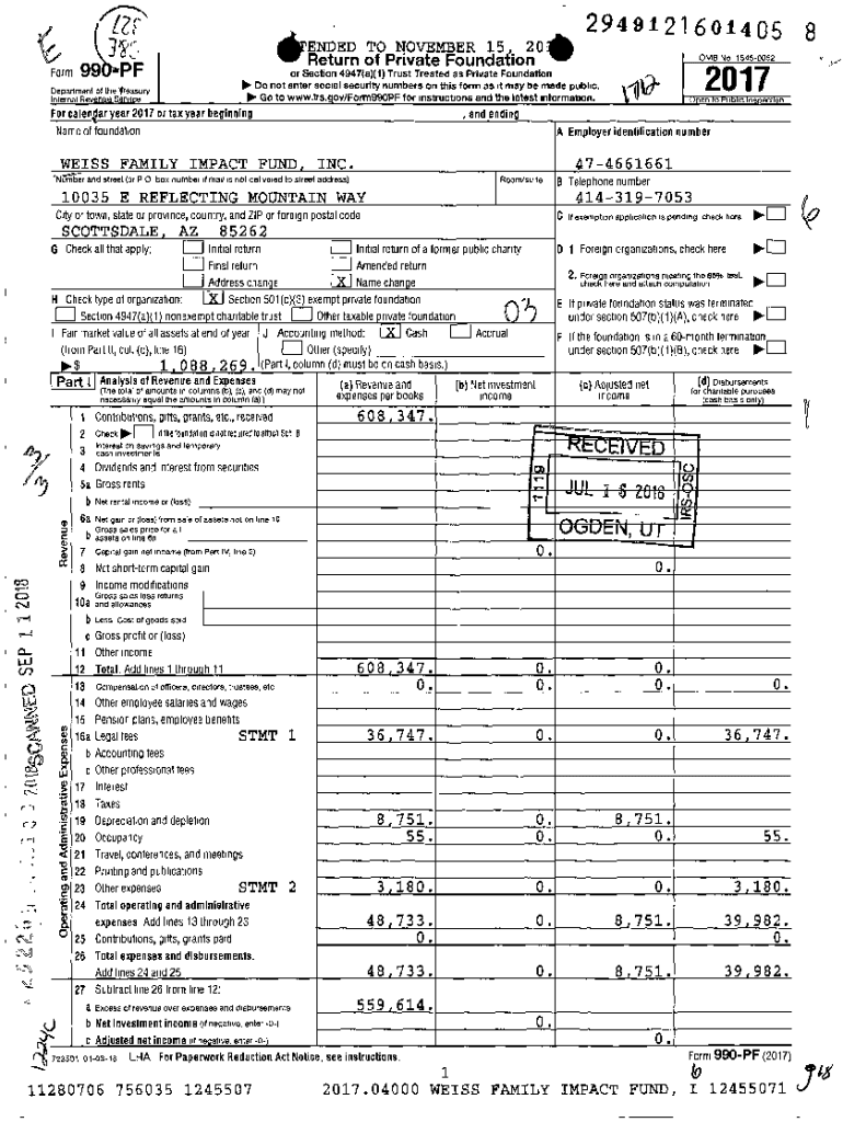 2949121601405 1 3 Form99c. ENDED TO NOVEMBER 15, 20.×Return of Private Foundation PF OMB No 15450052or Section 4947(a)(1) Trust Treated as Private Foundation DO not enter social security numbers