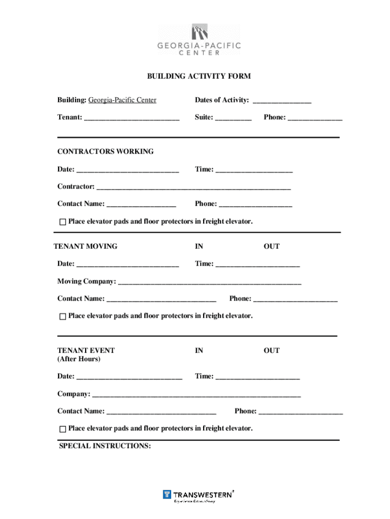 Building: Georgia Pacific Generates of Activity: ___Tenant: ___Suite: ___Phone: ______