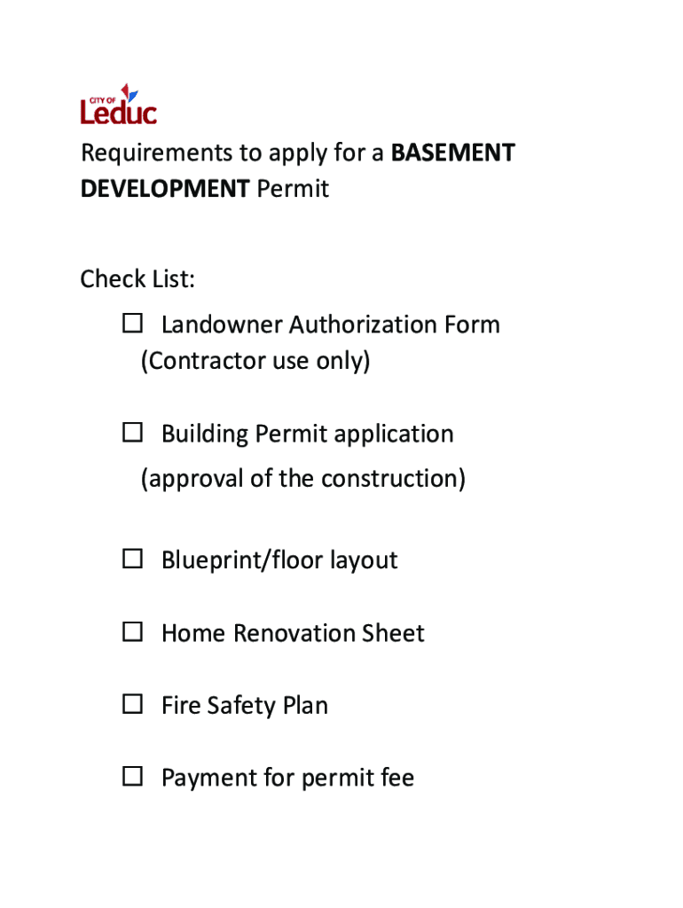 Contact your local building department to determine the specific requirements for basement building permits in your area.