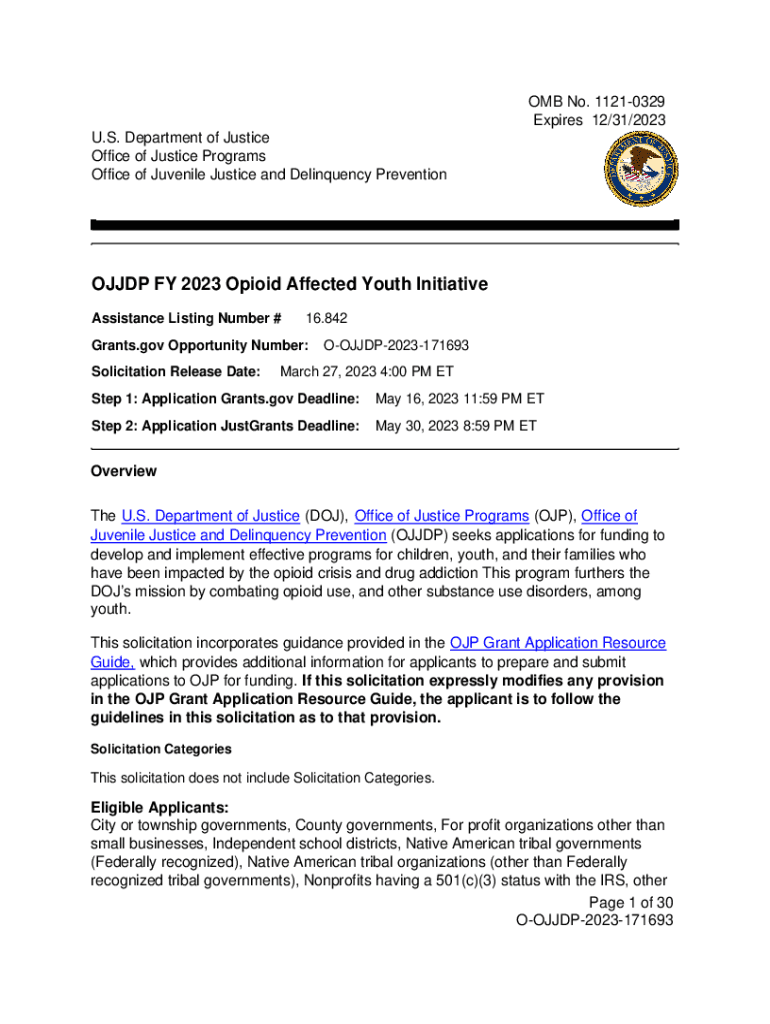 Office of Juvenile Justice and Delinquency PreventionOJJDP FY 2023 Opioid Affected Youth Initiative