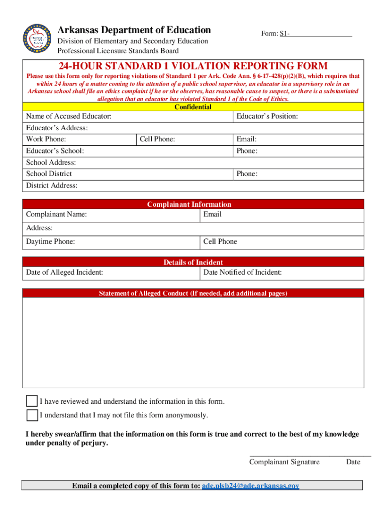 Arkansas Department of Education Division of Secondary and Elementary of Education Professional Licensure Standards Barcode of Ethics 24Hour Standard 1 Report Information PacketRevised May 2023Arkansas