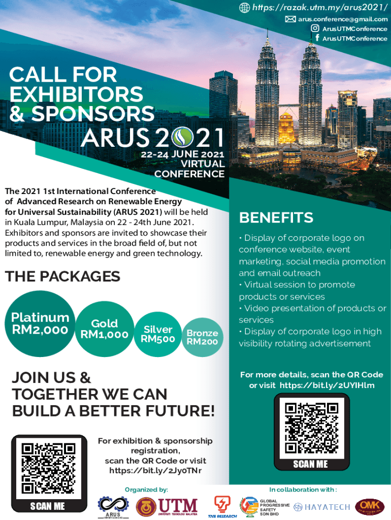 HTTPS://razak.utm.my/arus2021/ arus.conference@gmail.com ArusUTMConference ArusUTMConferenceCALL FOR EXHIBITORS & SPONSORSHIPS 2 21 2224 JUNE 2021 VIRTUAL Conference 2021 1st International Conference