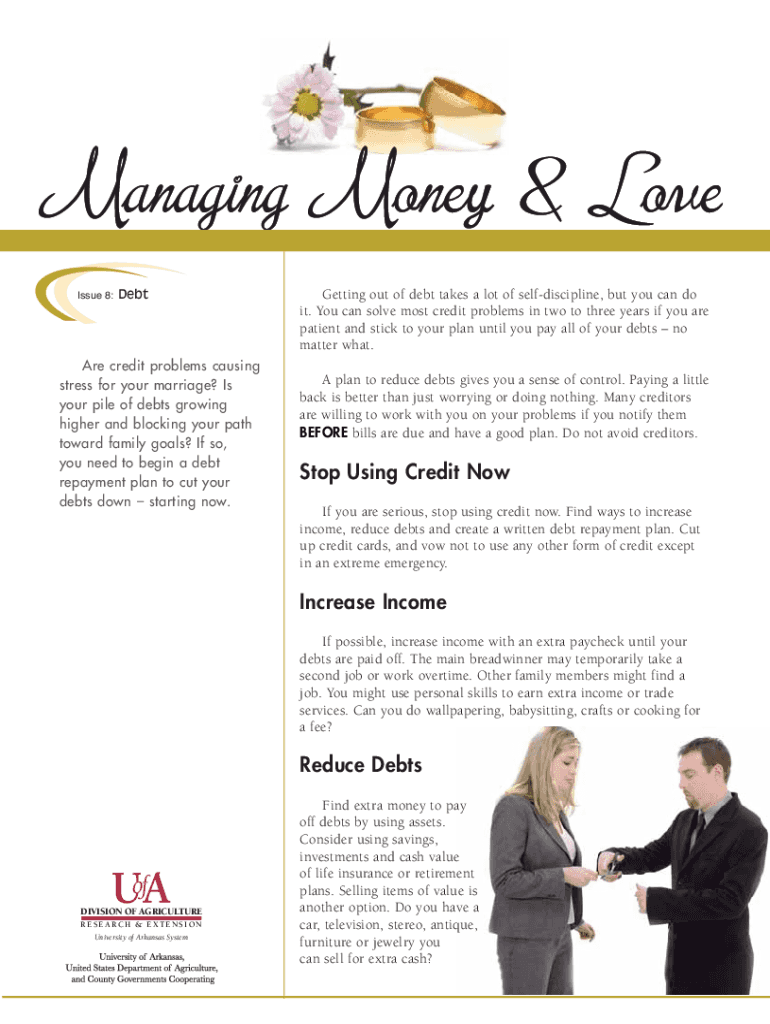 Get the free Managing Money and Love - Issue 8 - Debt. This issues discusses debt repayment plans...