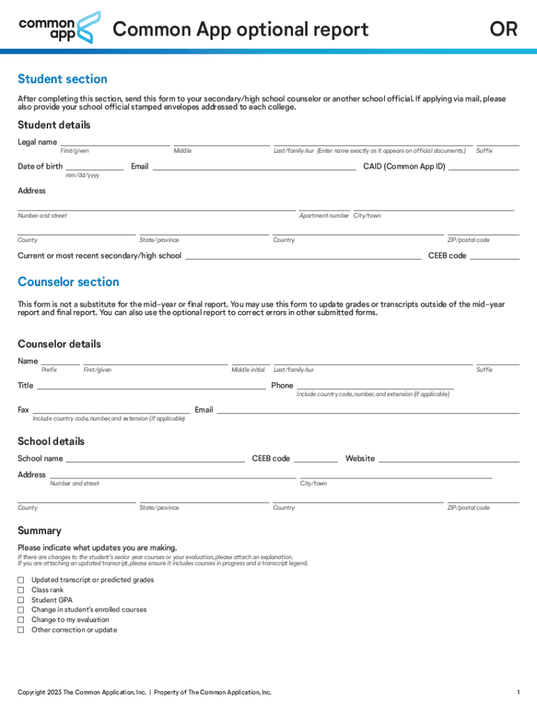 Common App Optional Report is not the form you're looking for?Search for another form here.