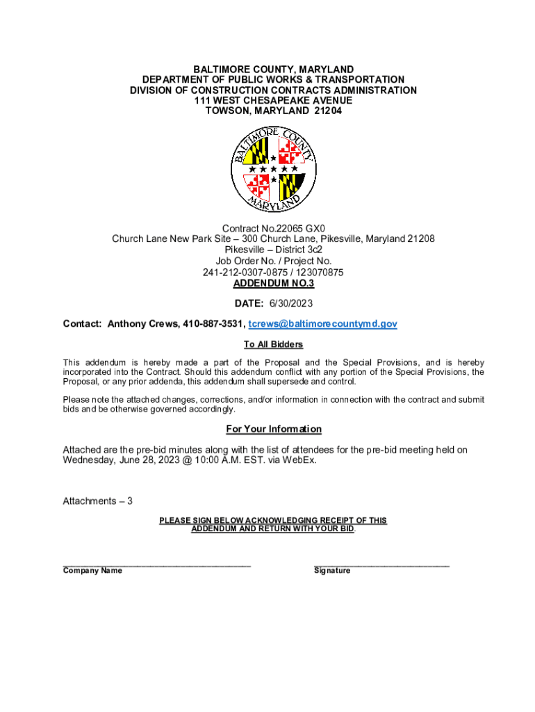 Get the free Baltimore County Department of Public Works and ...