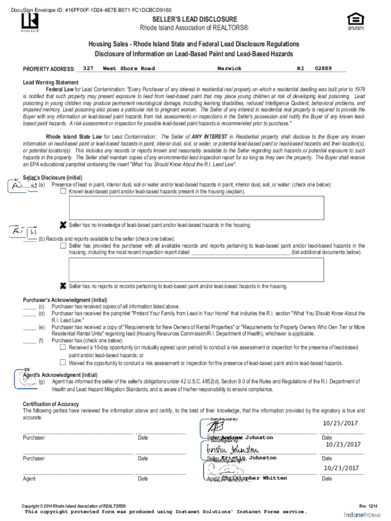 Get the free Lessor's Lead Disclosure Rhode Island Association of ...