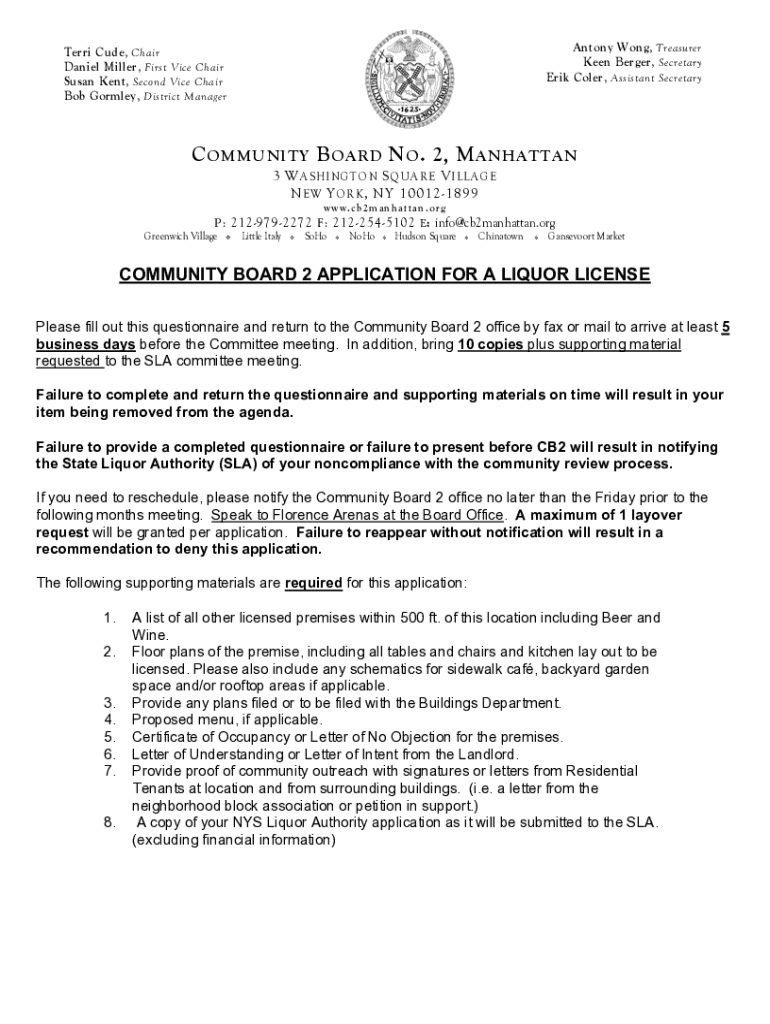 Anyone looking to apply for a liquor license in the state must fill out the State Liquor Authority form.