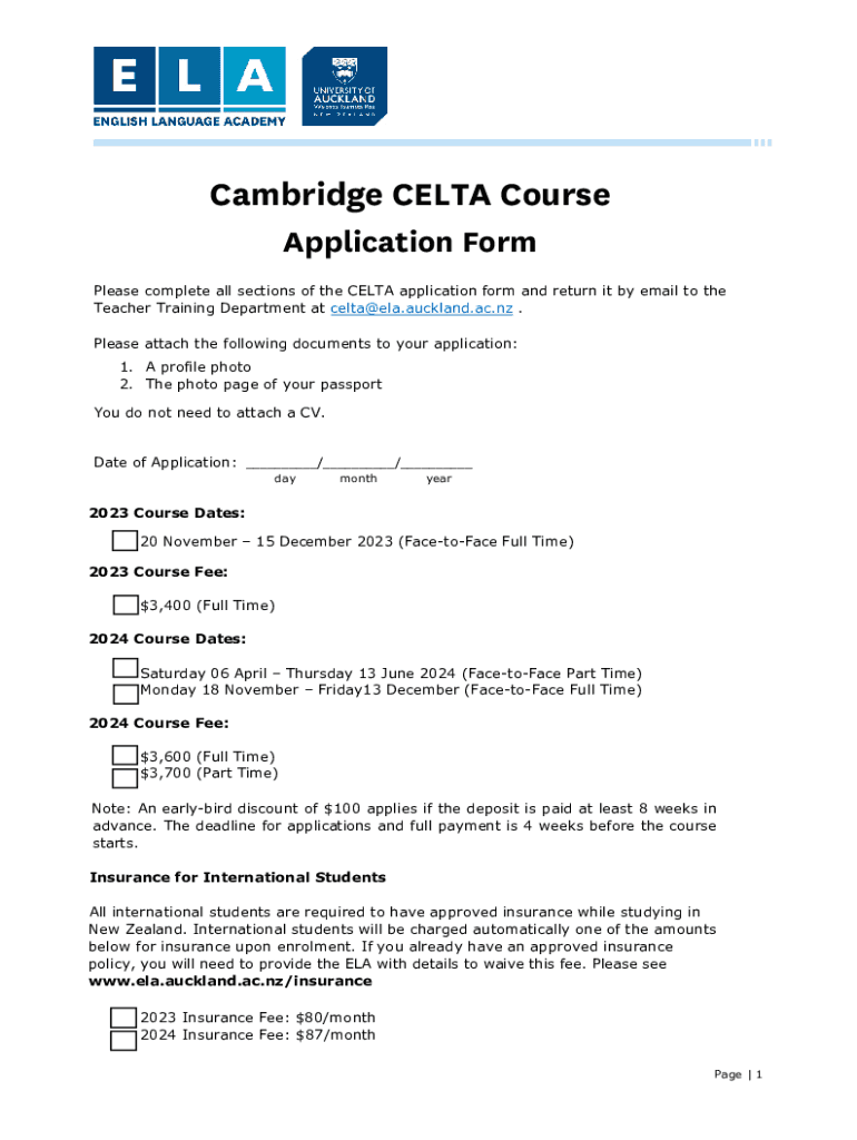Cambridge CELTA Course Application Form Please complete all sections of the CELTA application form and return it by email to the Teacher Training Department at celta@ela.auckland.ac.nz. Please attach