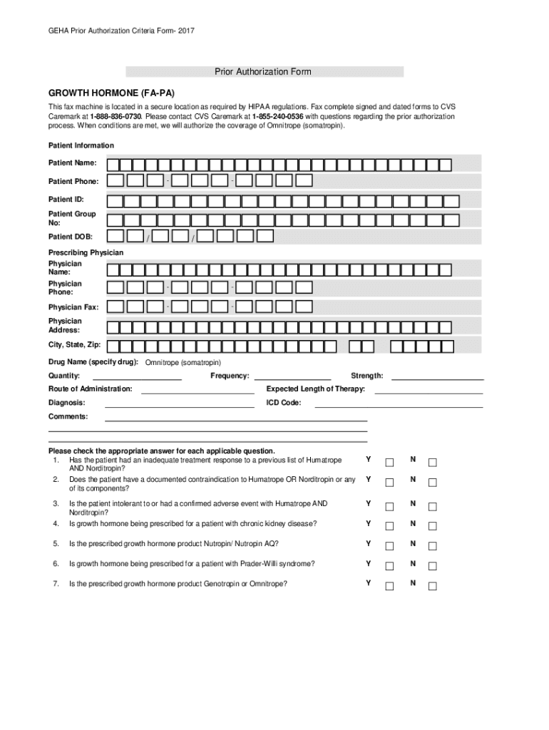 GHA Prior Authorization Criteria Form 2017Prior Authorization Form (APA) This fax machine is located in a secure location as required by HIPAA regulations. Fax complete signed and dated forms to CVS