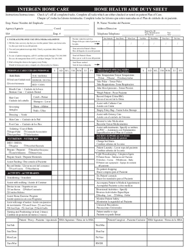 Obtener el gratis AHC Intergen HHA duty sheet.ai