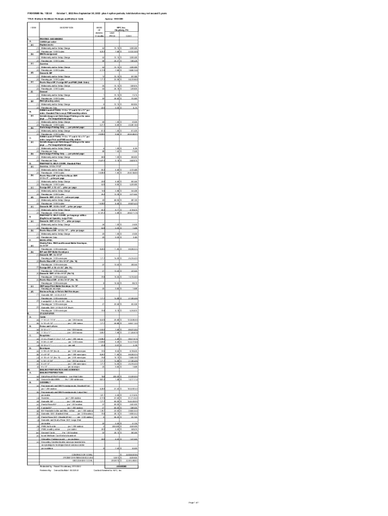 PROGRAM No. 1583SOctober 1, 2022 through September 30, 2023, plus 4 option periods, total duration may not exceed 5 Aristotle: Medicare Enrollment Packages and Medicare CardsITEMDESCRIPTIONI. Agency: