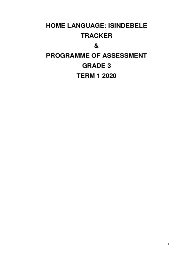 HOME LANGUAGE: NDEBELE TRACKER & Program OF ASSESSMENT GRADE 3 TERM 1 20201Contents Curriculum Coverage Term 1 .....................................................................................