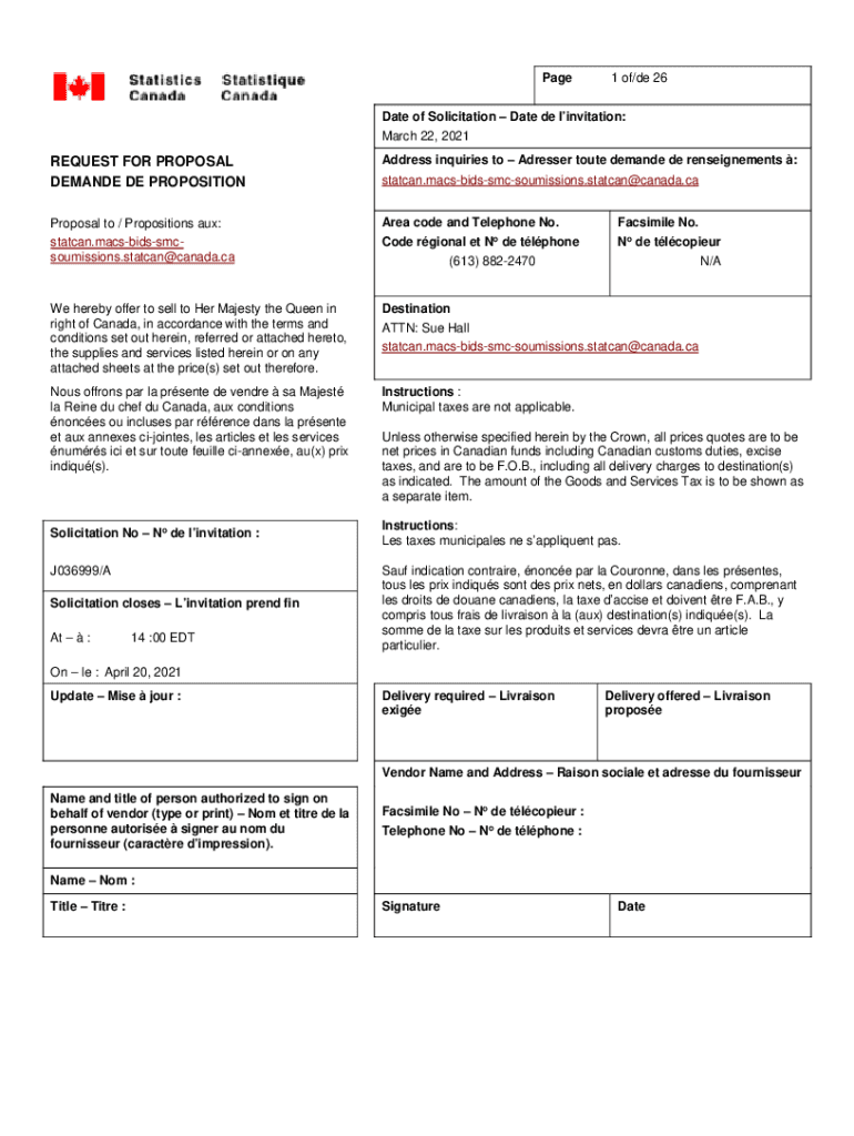 Page1 of/de 26Date of Solicitation Date DE invitation: March 22, 2021REQUEST FOR PROPOSAL DEMAND DE PROPOSITIONAddress inquiries to Dresser route demand DE restatements :Proposal to / Propositions
