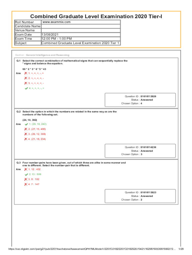 Combined Graduate Level Examination 2020 Earl Roll Number Candidate Name Venue Name Exam Date Exam Time Subjectwww.exammix.com13/08/2021 12:00 PM 1:00 PM Combined Graduate Level Examination 2020 Tier