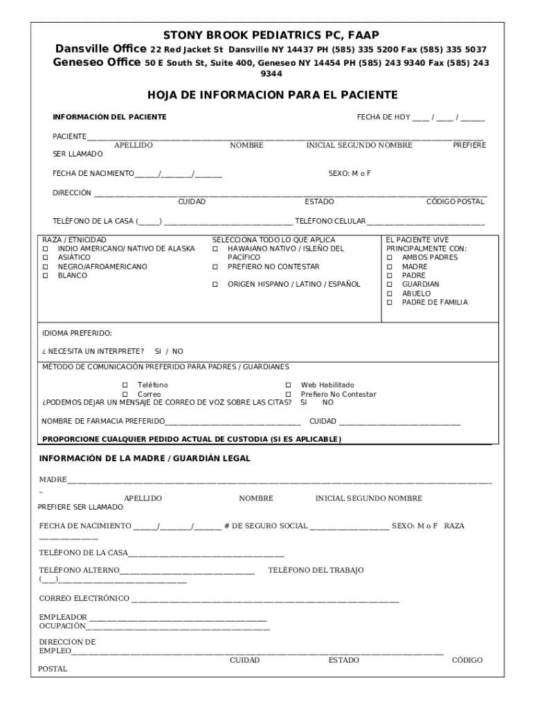 Instructions for the Stony Brook Pediatrics, PCPediatrics in Dansville, NY form