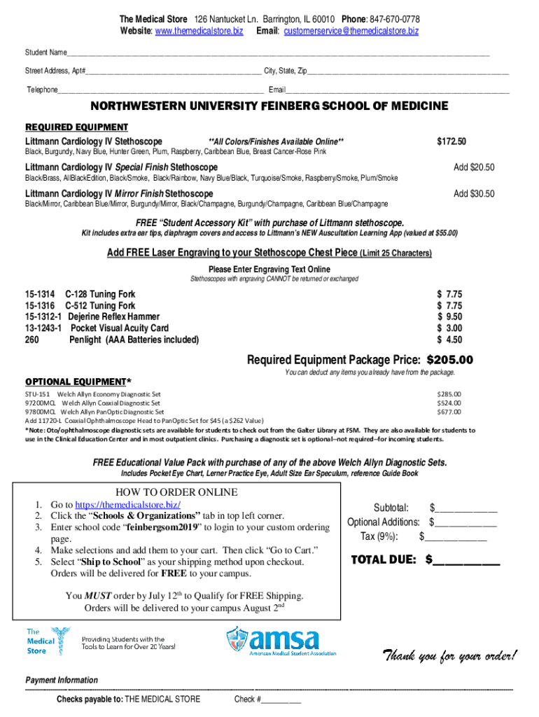 The Medical Store 126 Nantucket Ln. Barrington, IL 60010 Phone: 8476700778 Website: www.themedicalstore.biz Email: customerservice@themedicalstore.biz Student Name___ Street Address, Apt#___ City,