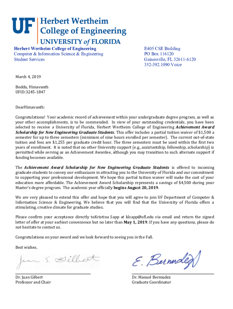 Herbert Wertheim College of Engineering Computer & Information Science & Engineering Student ServicesE405 CSE Building PO Box 116120 Gainesville, FL 326116120 352392.1090 Voice March 4, 2019, Body,