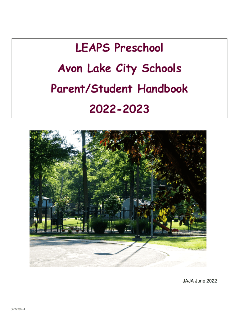 LEAPS Preschool Avon Lake City Schools Parent/Student Handbook 20222023JAJA June 20223279395v1LEAPS PRESCHOOL HANDBOOK CONTENTS Page Welcome 2 Days / Hours of Operation 2 District Beliefs 2 Philosophy