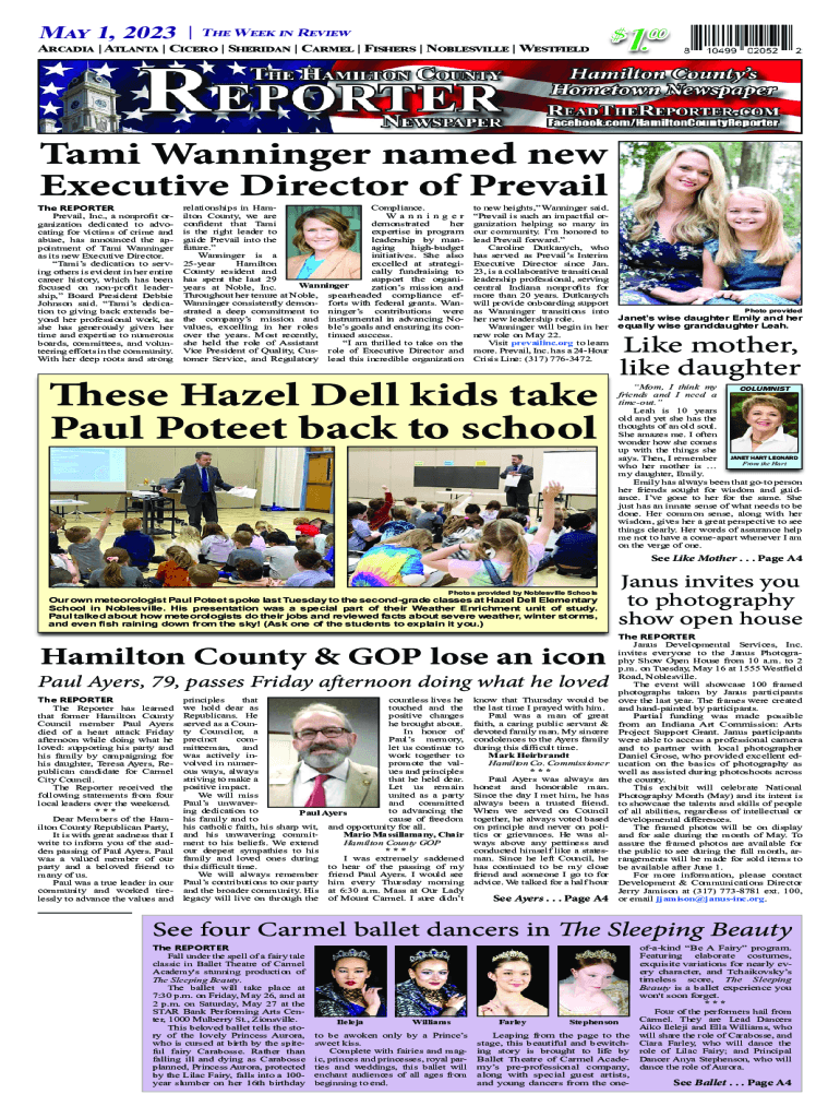 May 1, 2023 | The Week in Review Arcadia | Atlanta | Cicero | Sheridan | Carmel | Fishers | Noblesville | Westfield1.$ 00Tami Cunninger named new