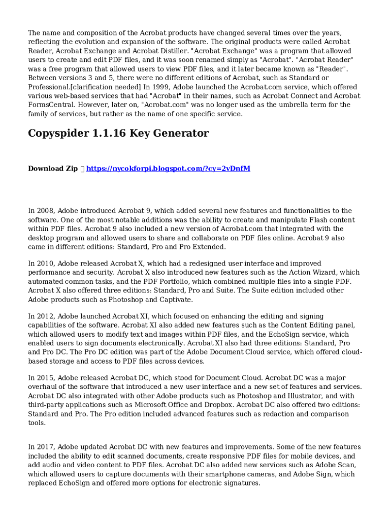 The name and composition of the Acrobat products have changed several times over the years, reflecting the evolution and expansion of the software. The original products were called Acrobat Reader,