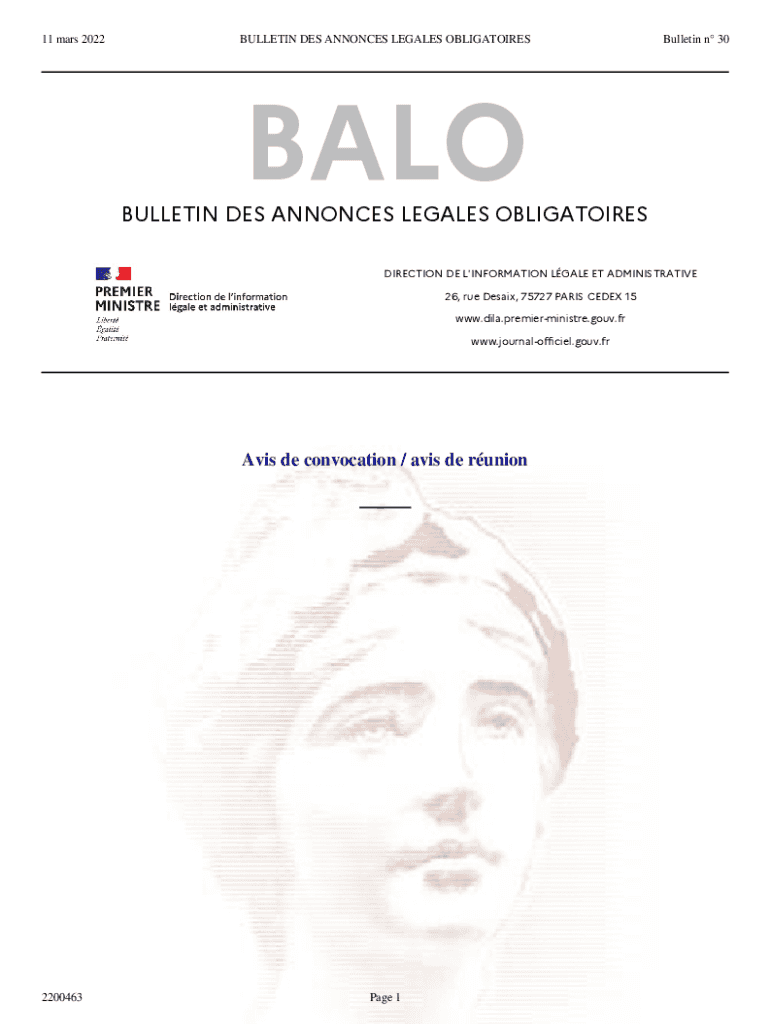 Obtenir le gratuit Bulletin des Annonces Lgales ObligatoiresAnnonce n 2200463 du 11 mars 2022. An...