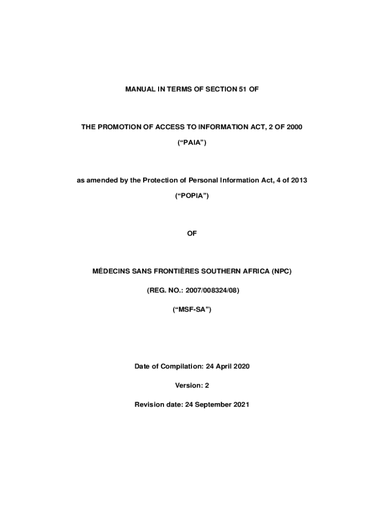 MANUAL IN TERMS OF SECTION 51 THE PROMOTION OF ACCESS TO INFORMATION ACT, 2 OF 2000 (PAID)as amended by the Protection of Personal Information Act, 4 of 2013 (POPPA)OFMDECINS SANS FRONTIER SOUTHERN