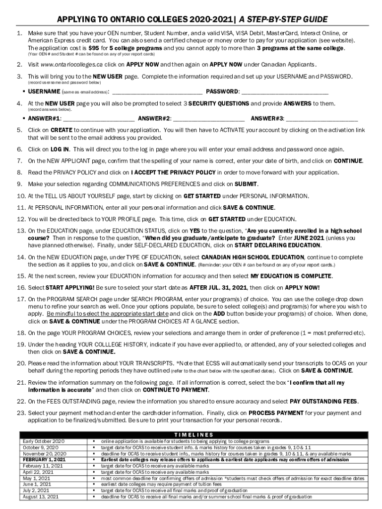 APPLYING TO ONTARIO COLLEGES 20202021| A STEPSISTER GUIDE 1. Make sure that you have your ON number, Student Number, and a valid VISA, VISA Debit, MasterCard, Interact Online, or American Express