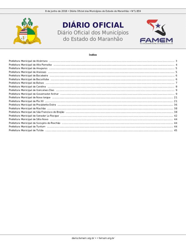 8 de Juno de 2018 Dario Social dos Municipal do Est ado do Maranhão N1.859DIRIO OFFICIAL Dario Social dos Municipal do Est ado do Maranhão ndicePrefeitura Municipal de Alcntara ..........................................................................................................................................................................