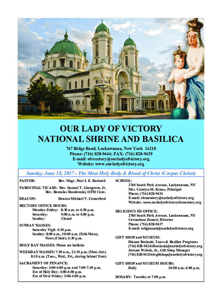OUR LADY OF VICTORY NATIONAL SHRINE AND BASILICA 767 Ridge Road, Lackawanna, New York 14218 Phone: (716) 8289444; FAX: (716) 8289429 Email: olvrectory@ourladyofvictory.org Website: www.ourladyofvictory.orgSunday,