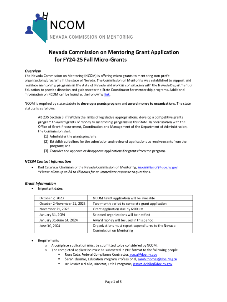 Nevada Commission on Mentoring Grant Application for FY2425 Fall Micrograys Overview Nevada Commissions on Mentoring (COM) is offering microgrants to mentoring nonprofit organizations/programs in