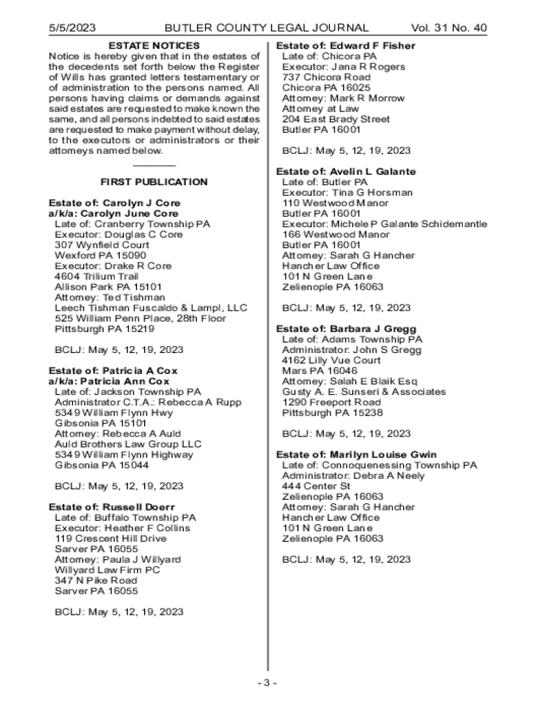 5/5/2023BUTLER COUNTY LEGAL JOURNALESE NOTICES