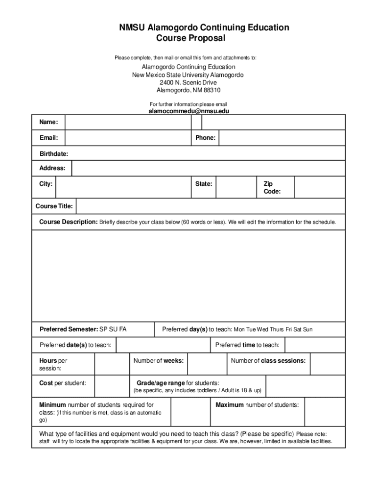 MSU Alamogordo Continuing Education Course Proposal Please complete, then mail or email this form and attachments to:Alamogordo Continuing Education New Mexico State University Alamogordo 2400 N.
