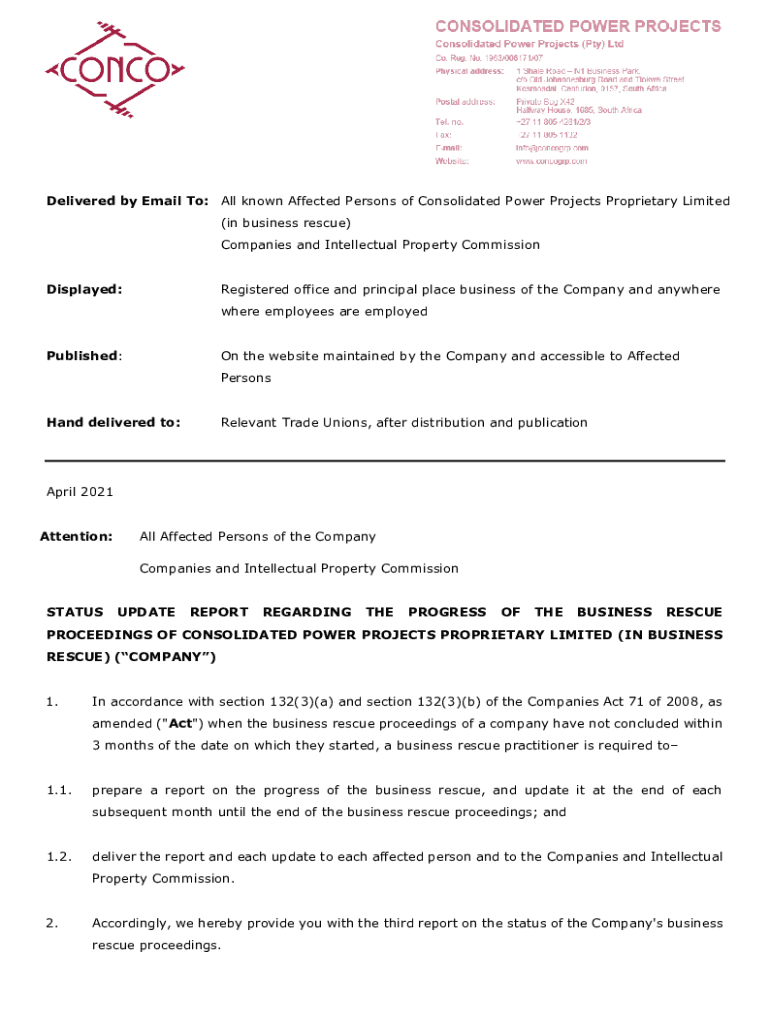 Get the free Delivered by Email To: All known Affected Persons of Consolidated Power Projects Pro...