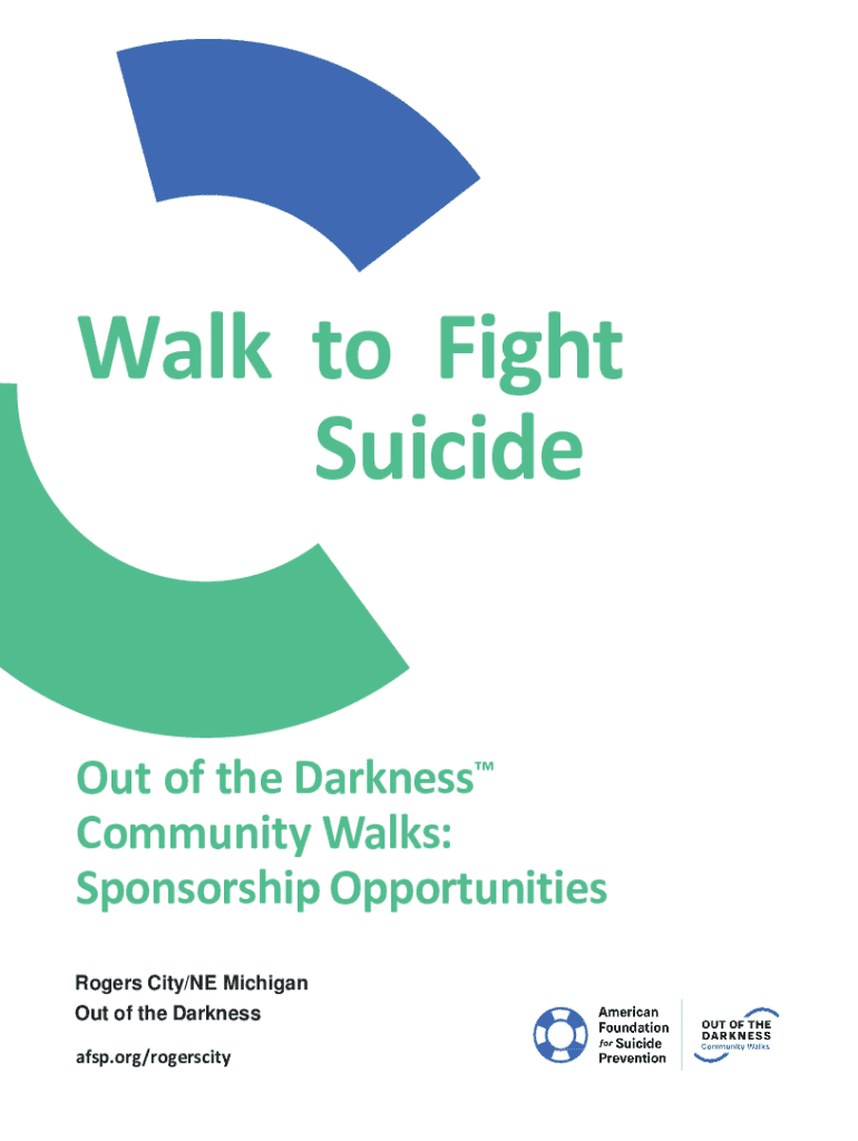 Walk to Fight Suicide of the Darkness Community Walks: Sponsorship Opportunities Rogers City/NE Michigan Out of the Darkness afsp.org/rogerscitySPONSOR A COMMUNITY WALK You can be an everyday hero