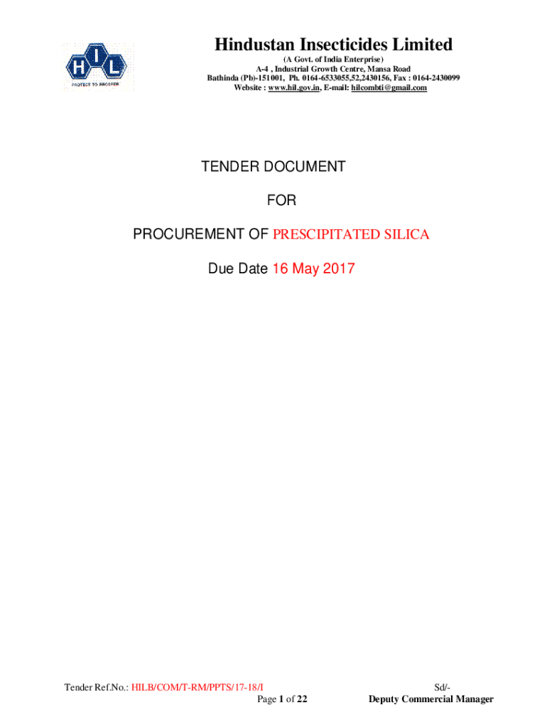 Hindustan Insecticides Limited (A Govt. of India Enterprise) A4, Industrial Growth Center, Mania Road Bathing (Pb)151001, pH. 01646533055,52,2430156, Fax : 01642430099 Website : www.hil.gov.in, Email: