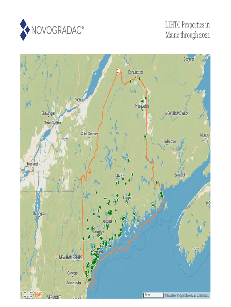 Maine through 202150 mi Mailer OpenStreetMap contributorsLIHTC Properties in Maine Through 2021