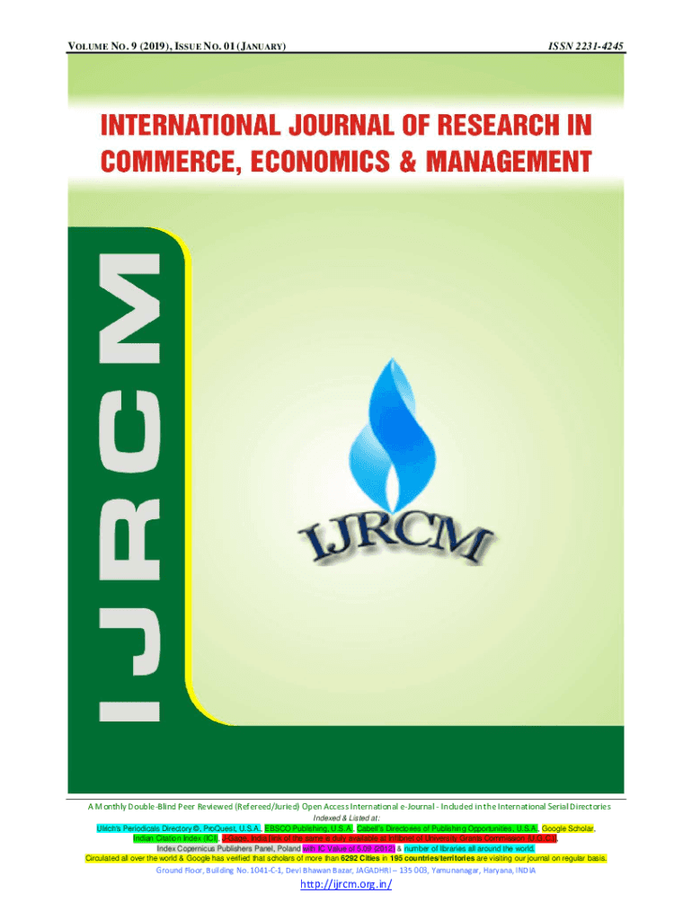 VOLUME NO. 9 (2019), ISSUE NO. 01 (JANUARY)ISSN 22314245A Monthly DoubleClick Peer Reviewed (Refereed/Buried) Open Access Internationale Journal Included in the International Serial Directories Indexed