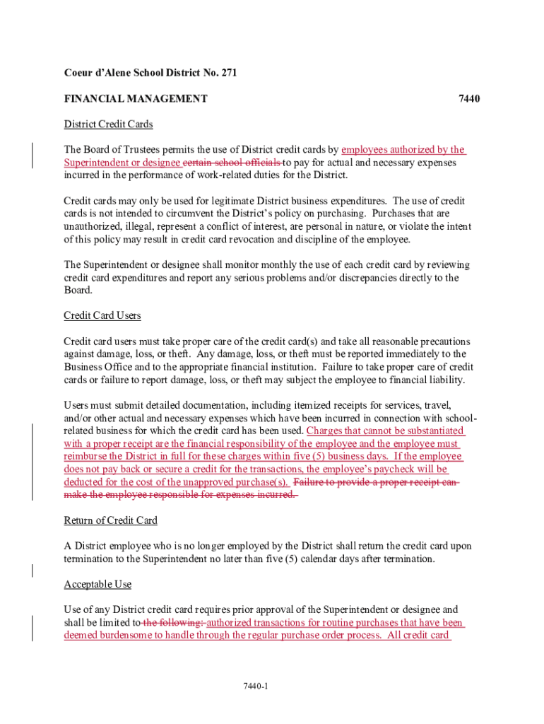 Get the free Use of School District Credit Cards POLICY NO - Connect Suite