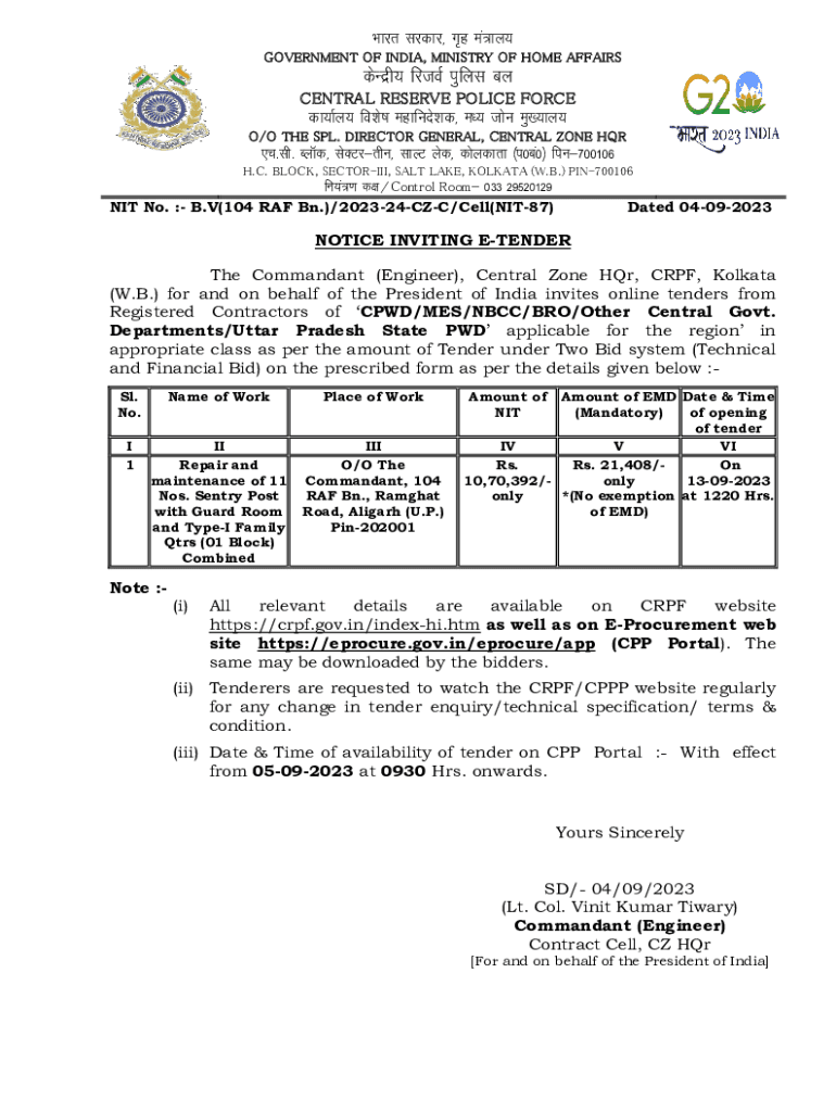 Get the free Public (Military) Department - crpf gov