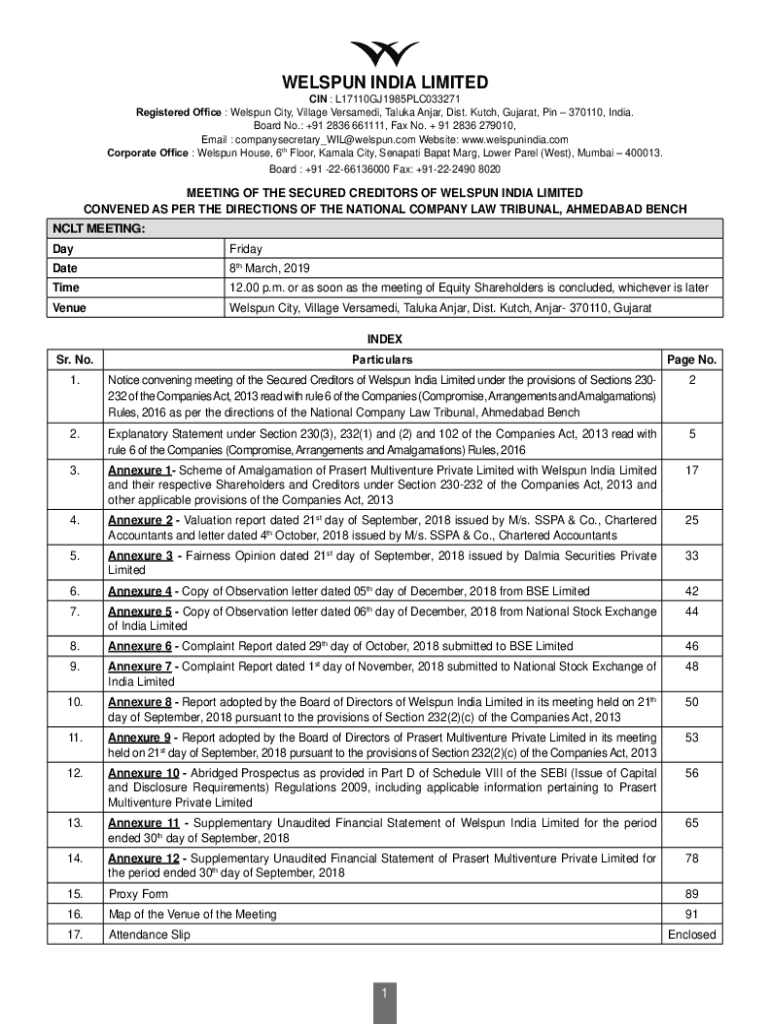 Fill out your registered office welspun city online with pdfFiller!