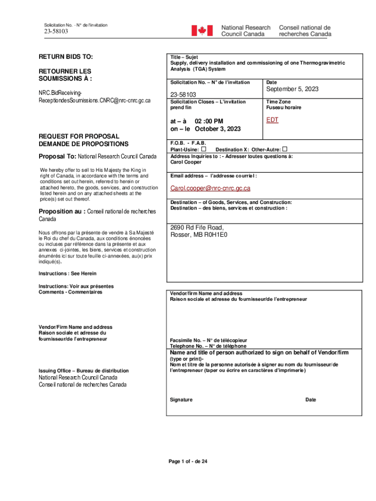 Get the free Proposal To: National Research Council Canada
