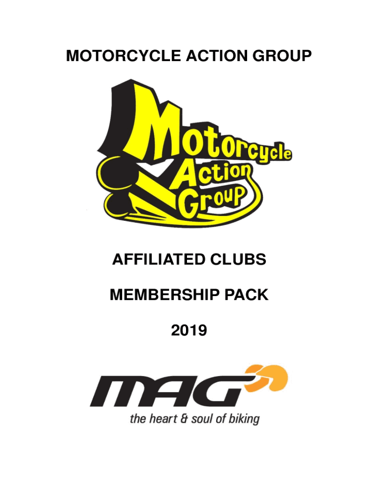 MOTORCYCLE ACTION GROUPAFFILIATED CLUBS MEMBERSHIP PACK 2019INTRODUCTION FROM THE CHAIR MAG needs you! There are two very important reasons why MAG needs you, and they are both very straightforward.