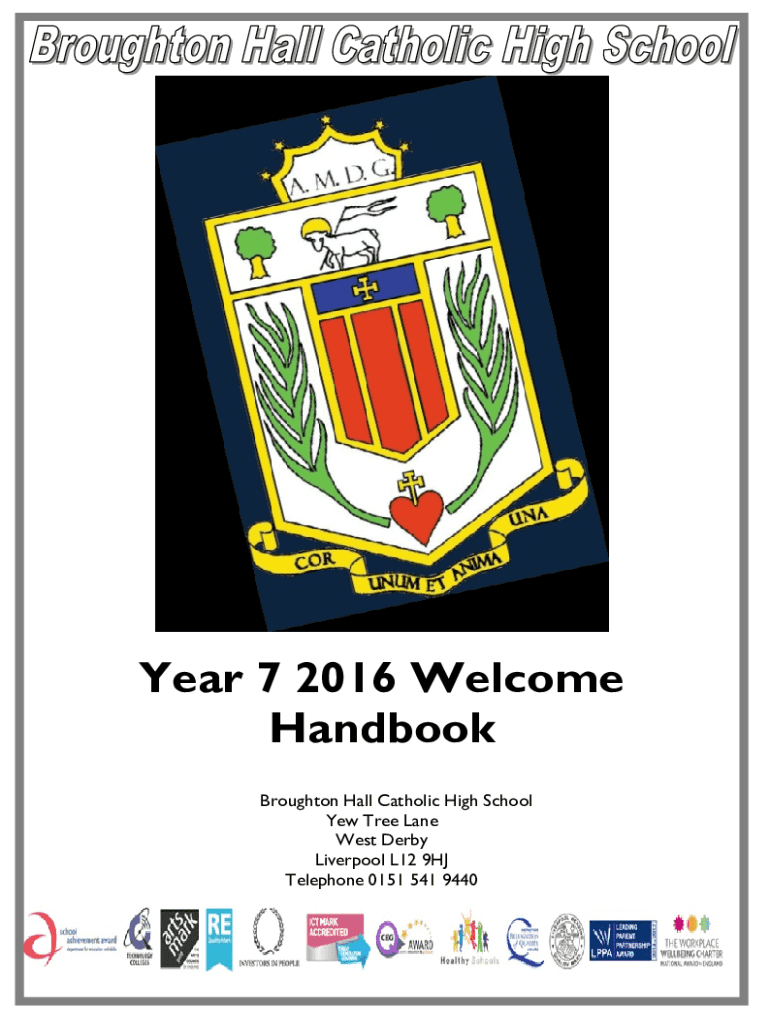 Year 7 2016 Welcome Handbook Brought on Hall Catholic High School Yew Tree Lane West Derby Liverpool L12 9HJ Telephone 0151 541 94400Welcome to Brought on Hall Your name: ___ Your form: ___Your progress