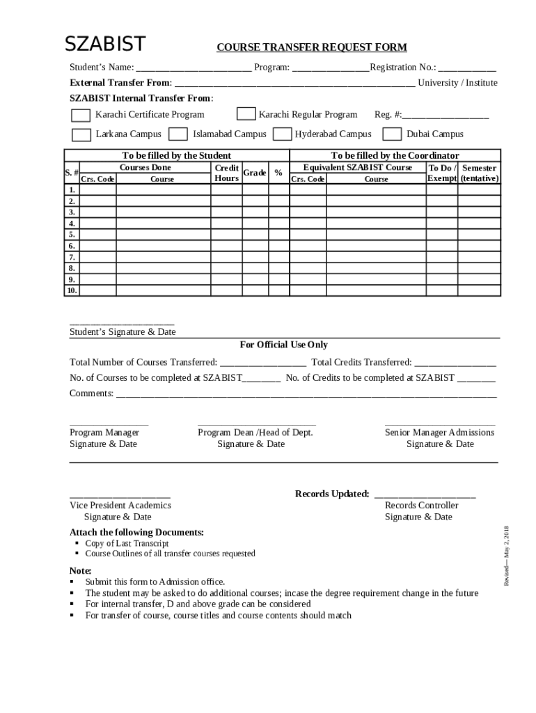 Instructions for the DIRECT APPLICATION Transfers, both internal and ... form