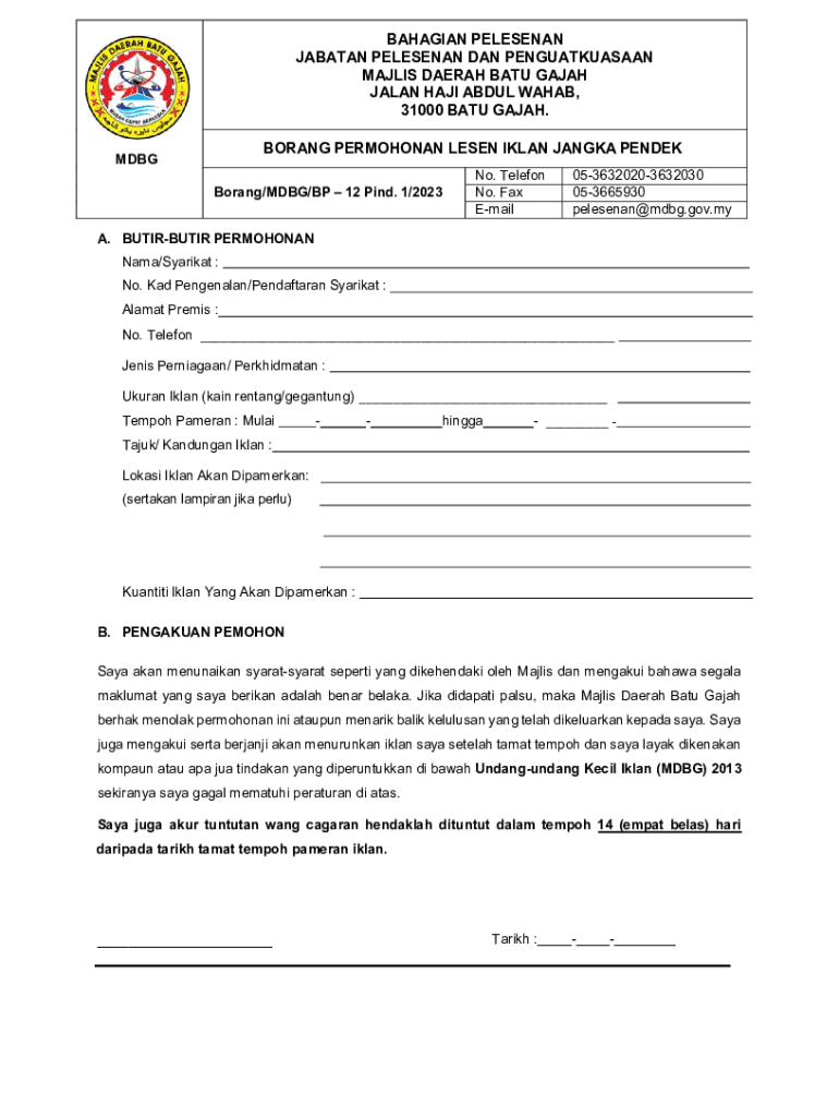 Get the free Batu Gajah District Council - Jabatan Pelesenan