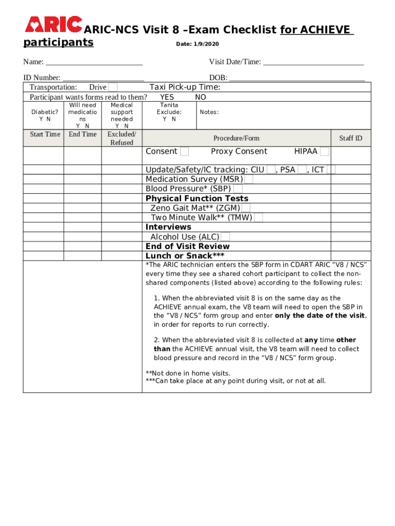Frequently asked questions about ARIC-NCS Visit 7Full Exam Checklist (no prior ACHIEVE) template